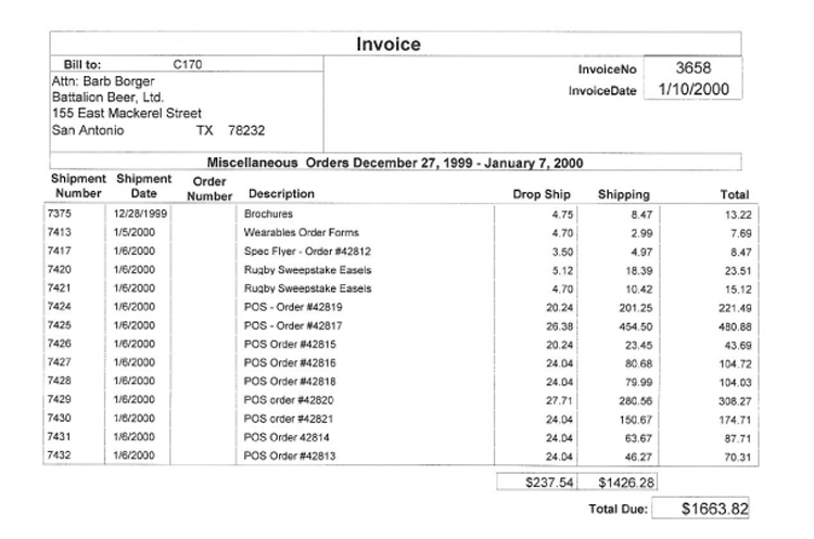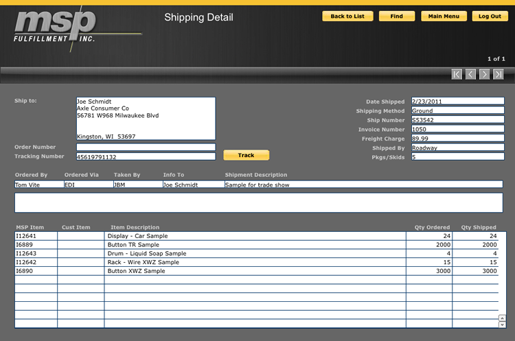 Daily order invoices are also available, and include a line by line listing of every order placed. Each line item contains an MSP Shipment number, customer order number, order date, description, MSP charge and the shipping charge.