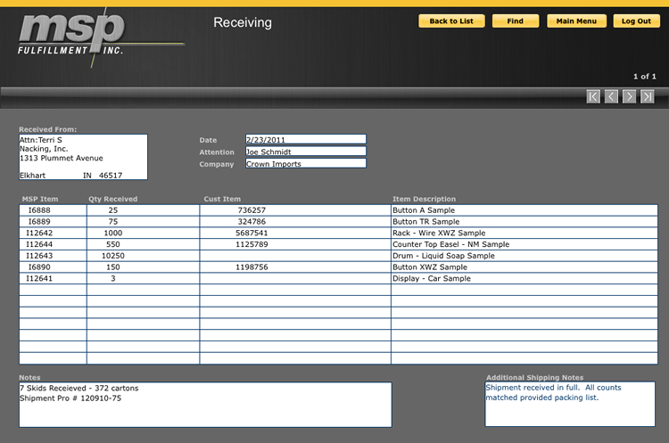Phone, email and faxed orders are entered into our database and printed in triplicate form. The triplicate form provides an internal record, an invoice back-up record, and a packing slip.